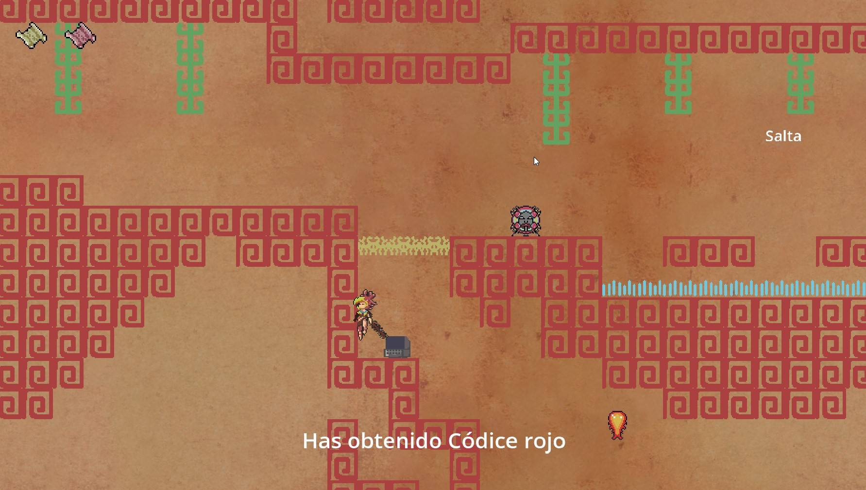Códice del fuego es un mini metroidvania indie inspirado en símbolos, temática y gráficos prehispánicos donde tienes que explorar un dungeon azteca para evitar que se quemen códices y se pierdan en la historia, conservando asi documentos valiosos sobre la historia prehispánica. Inspirado en hechos reales como la quema de códices durante la conquista, incluyendo la destrucción masiva llevada a cabo por Fray Diego de Landa en Yucatán, incluye elementos clásicos de metroidvania como exploración, enemigos, y obtener objetos para seguir avanzando en el juego, además la recuperación de códices como elemento integrado al gameplay (checkpoints, etc)