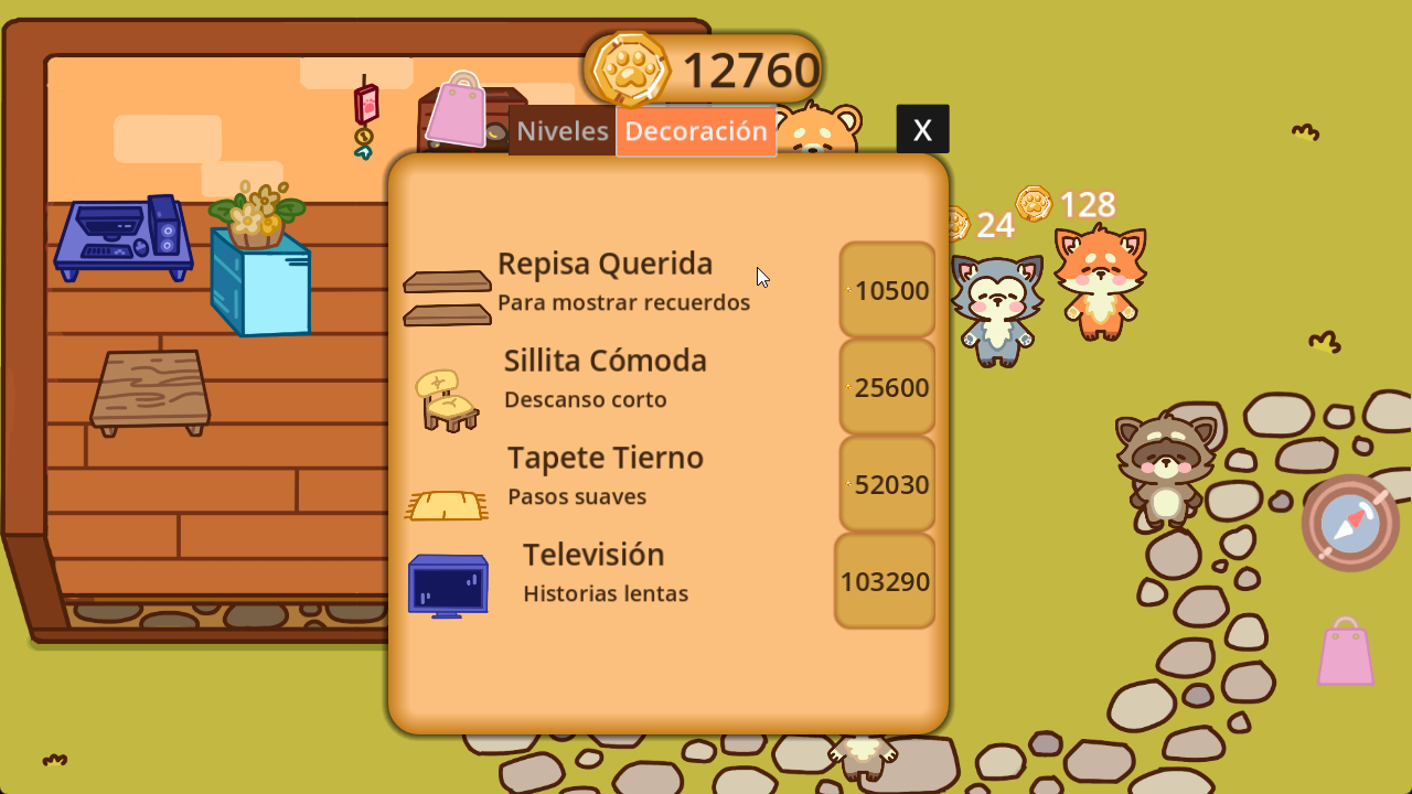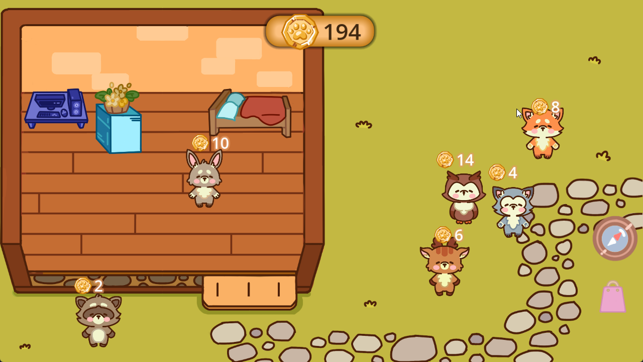 Sube de nivel a tus personajes para ganar más monedas, ve al bosque y desbloquea nuevos personajes, compra todos los muebles para ganar.